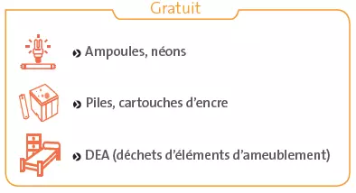 Gratuit : Ampoules/néons, Déchets d’éléments d’Ameublement (DEA), piles/cartouches d’encre